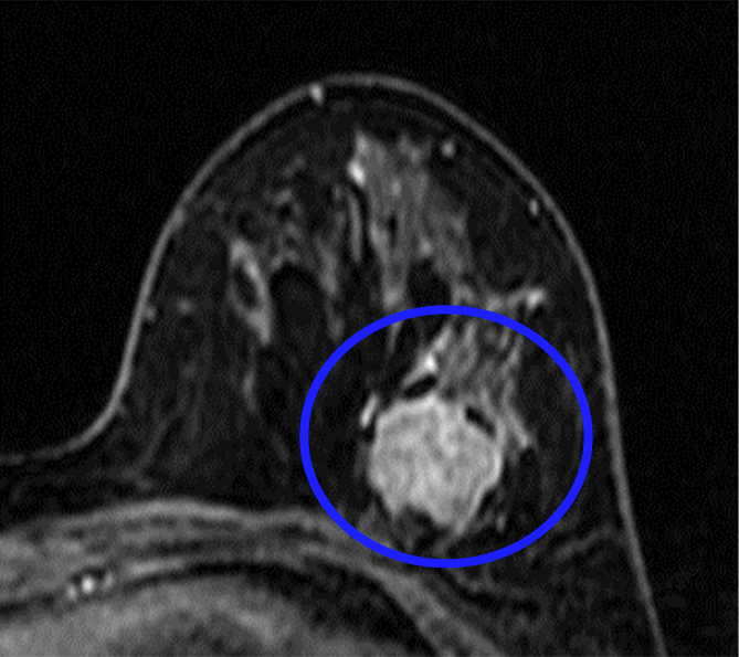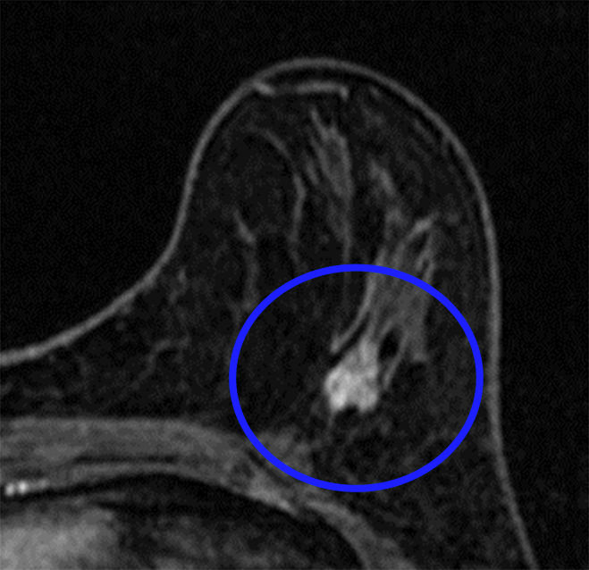 乳がんの検査で行われるのはマンモグラフィ検査、超音波検査、造影MRI検査です。マンモグラフィ検査は乳がん検診や、乳腺外科を受診した時に行われますが、乳房を圧迫してX線で撮影し腫瘤影や石灰化を見つけます。乳腺外科の外来ではさらに超音波検査を行い、時には造影MRI検査を行って診断のために組織検査(針生検)を行うかどうかを判断します。良性の腫瘍(線維腺腫や乳管内乳頭腫など)が疑われる場合には、組織検査を行わずに経過観察をお勧めすることもあります。