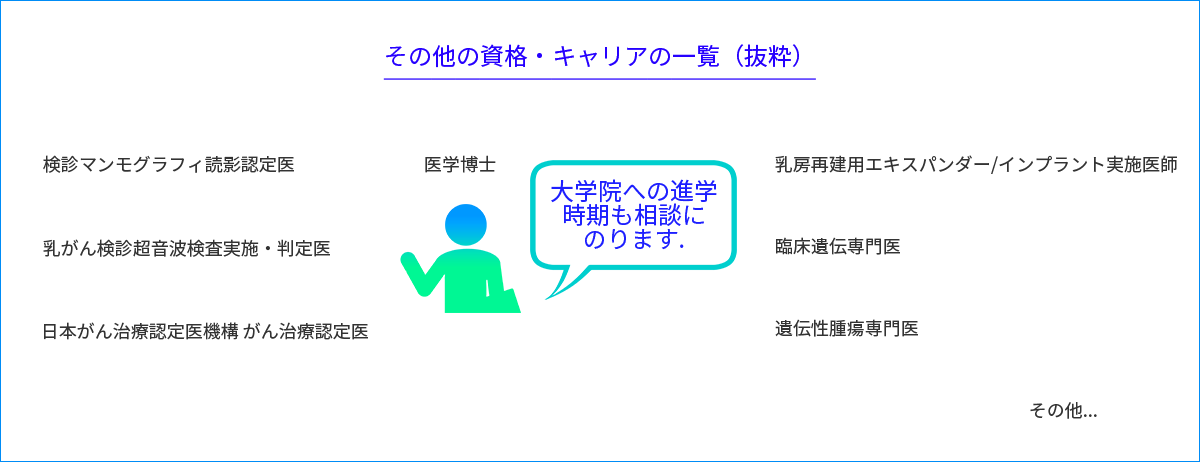 乳腺外科専門医の他にも様々な資格があります。